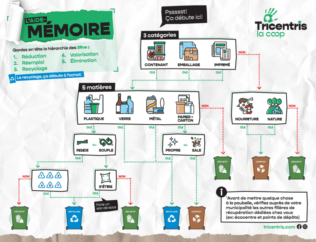 The Tricentris sorting centre has created a checklist you can follow to help sort your materials in the various bins.