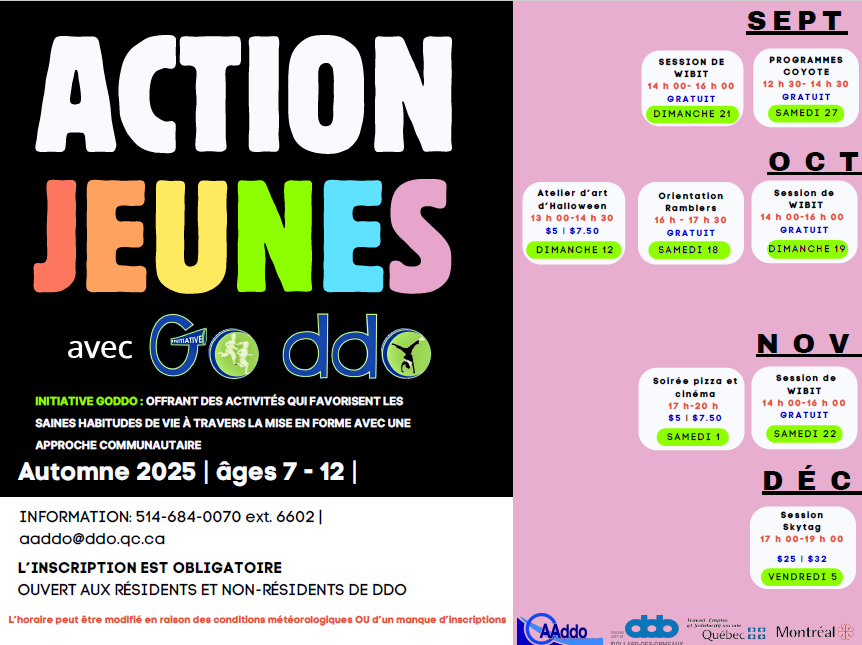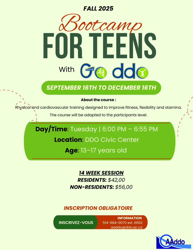 Go DDO Initiative is a program under the governance of the Dollard-des-Ormeaux Aquatic Association (AADDO) that aims to implement activities and programs to improve residents’ lifestyles by promoting a physical activity and healthy eating. The well-established networking with partners in early childhood, school, community, and municipal sectors provides our program with a comprehensive view of the community’s needs and the resources available within the territory of Dollard-des-Ormeaux.