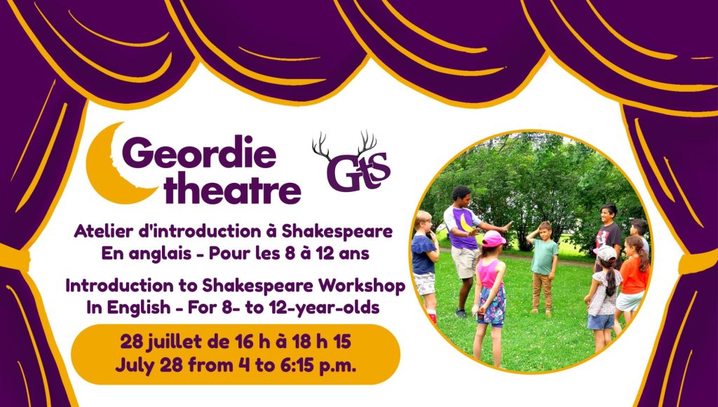 Dans l’atelier Shakespeare-Before-the-Show, les jeunes découvriront les joies du théâtre dans la beauté du jardin de la bibliothèque de Dollard-des-Ormeaux ! Au cours de cet atelier d’introduction de deux heures, les jeunes auront un avant-goût du plaisir d’explorer et de jouer Shakespeare. L’atelier se déroulera avant la représentation de Cymbeline du Théâtre Répercussion.