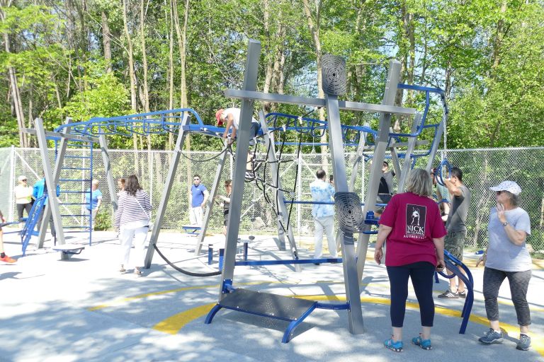 Cette aire d’exercices extérieure est le tout premier parc du genre dans la Ville et s’intègre parfaitement dans l’esprit de mobilité active du nouveau parc linéaire. Elle a été aménagée en partenariat avec Hydro-Québec grâce au programme de mise en valeur intégrée qui vise à améliorer le cadre de vie des collectivités qui accueillent de nouveaux projets.