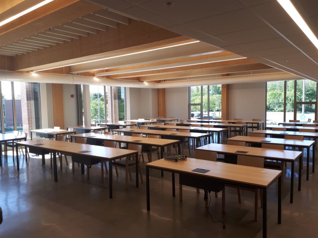Cette salle est aménagée de façon permanente comme une salle de classe. Elle comprend des tables et des chaises pour 48 participants. Elle est munie d’un tableau blanc effaçable, d’un projecteur et d’un système de son relié au projecteur. Vous devez apporter votre portable, vos rallonges électriques, votre fil HDMI et votre crayon effaçable pour le tableau. Les petites collations y sont permises, mais pour des services de repas ou de dîner, la réservation de la salle Vue sur parc serait à considérer.